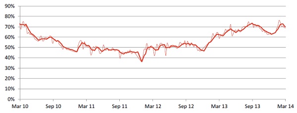 03-31 Weekly clearance rate, combined capital cities