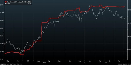 8.5.14 CWN vs FY15 consensus EPS forecasts