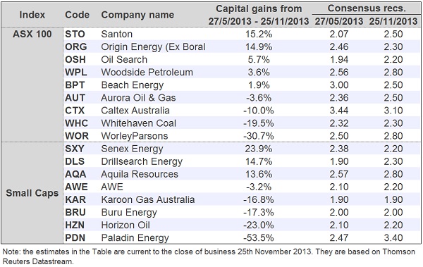 11-28 Table 1, Data on companies in the ASX 200’s Energy sector