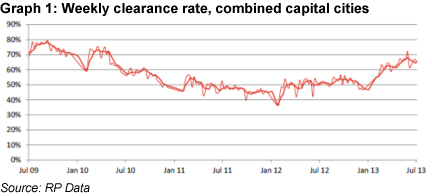 Weekly clearance rate, combined capital cities