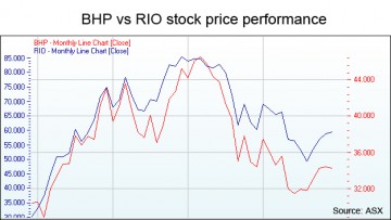 BHP vs Rio stock chart