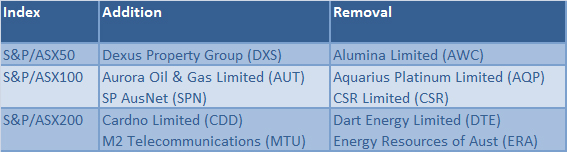 Index changes, Switzer Super Report