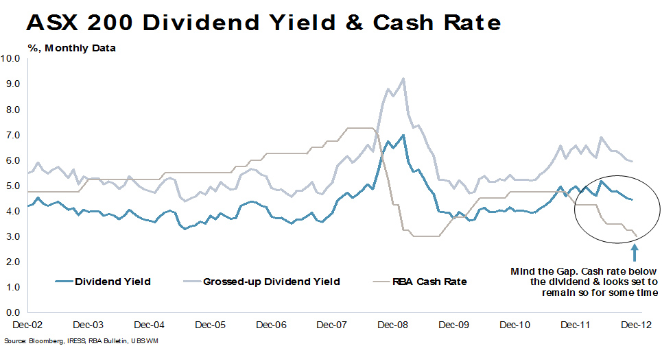 ASX dividend yield and cash rate