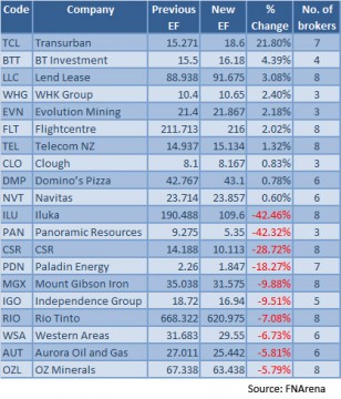 Earnings forecasts, Switzer Super Report