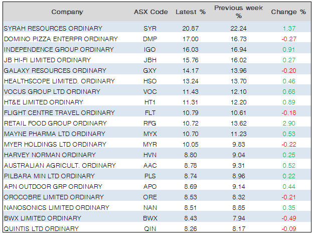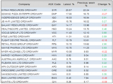 short stocks table