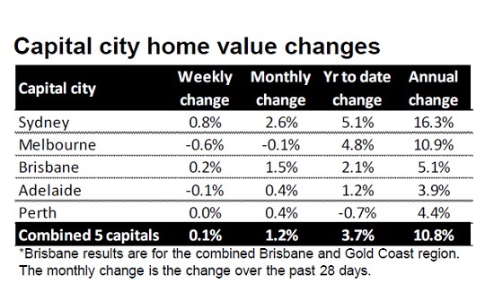 Capital city home value changes